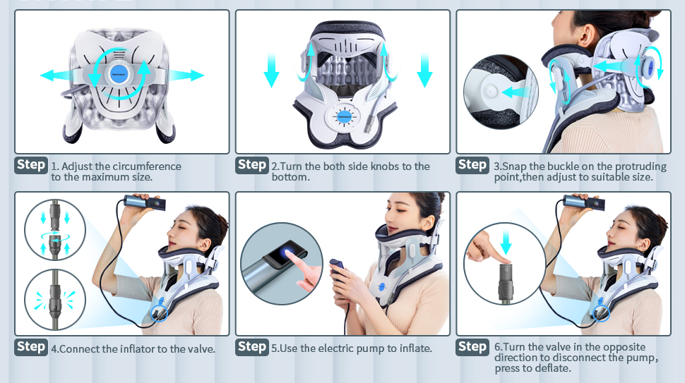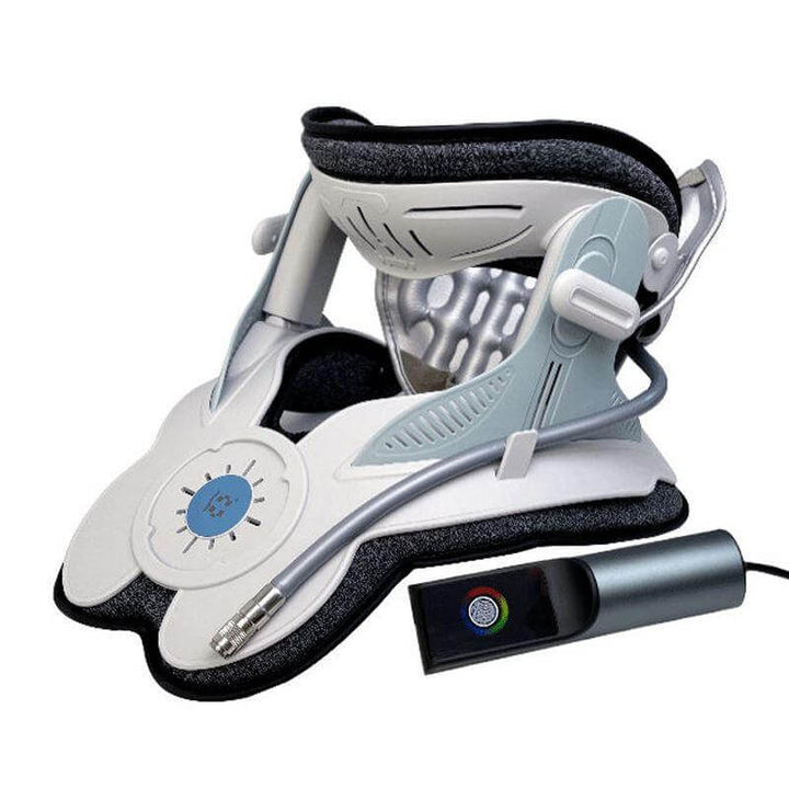 Traction Collar contains the pneumatic belt and one piece of the free-standing frame which provides a traction effect along the physiological curve through the up-down screws on L&R sides and inflated air bladder.