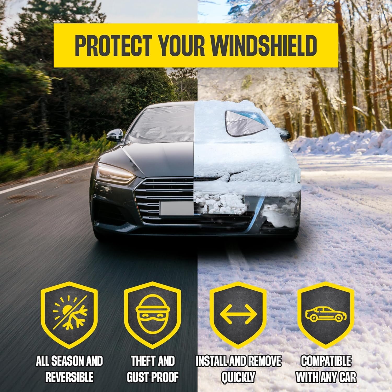 Designed for ultimate convenience and durability, our new upgraded windshield snow cover fully protects your car's windshield and wipers from winter rain, snow and ice. Just flip it up and ready to drive!