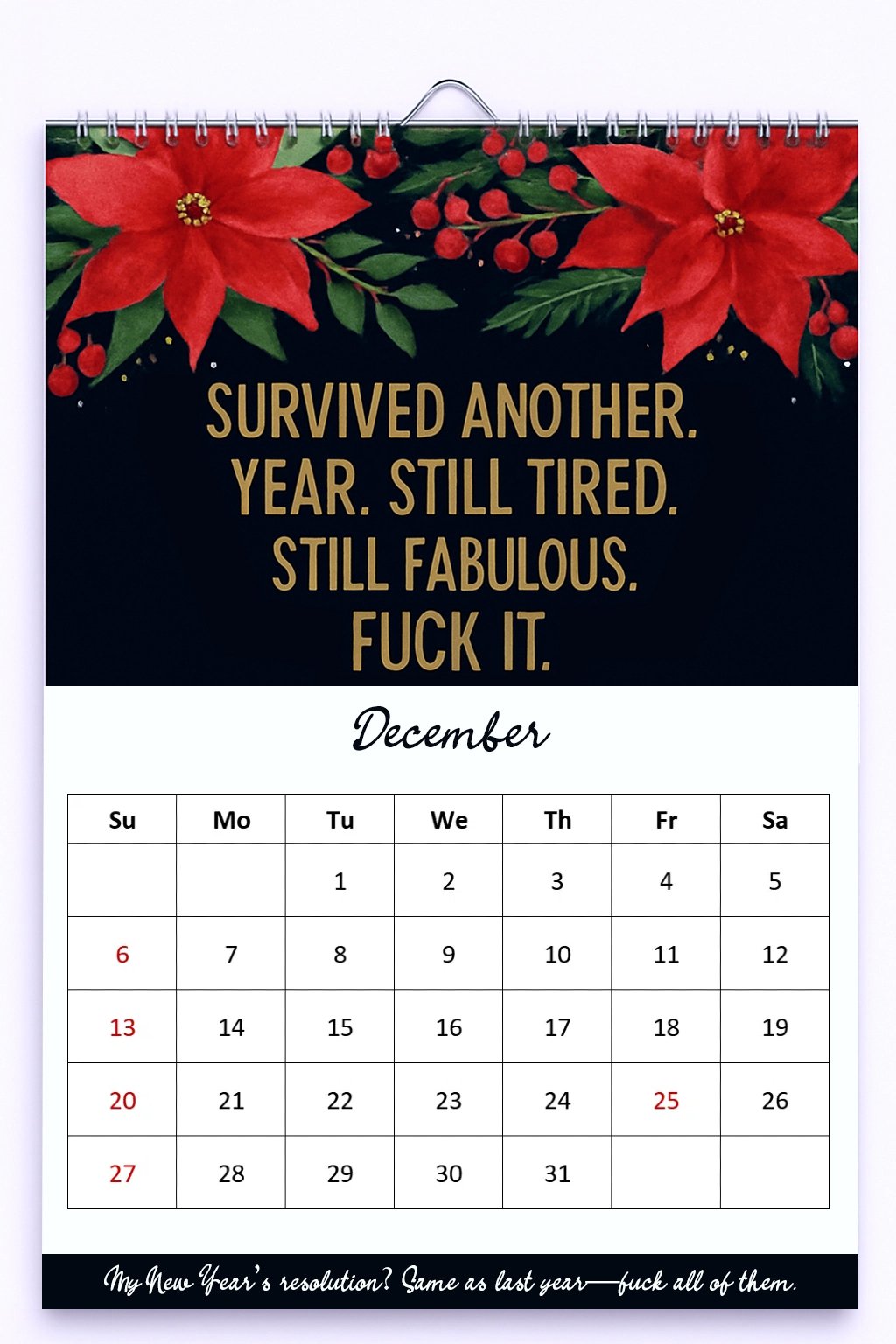 Sassy, bold, and unapologetically real—this wall calendar is back for another year of brutal honesty. Following the best-selling 2025 version, the Fuck It Again – 2026 Calendar delivers even sharper wit and more sarcastic charm. Each month brings you a new unapologetic reminder that you’re not alone in being completely over it.
