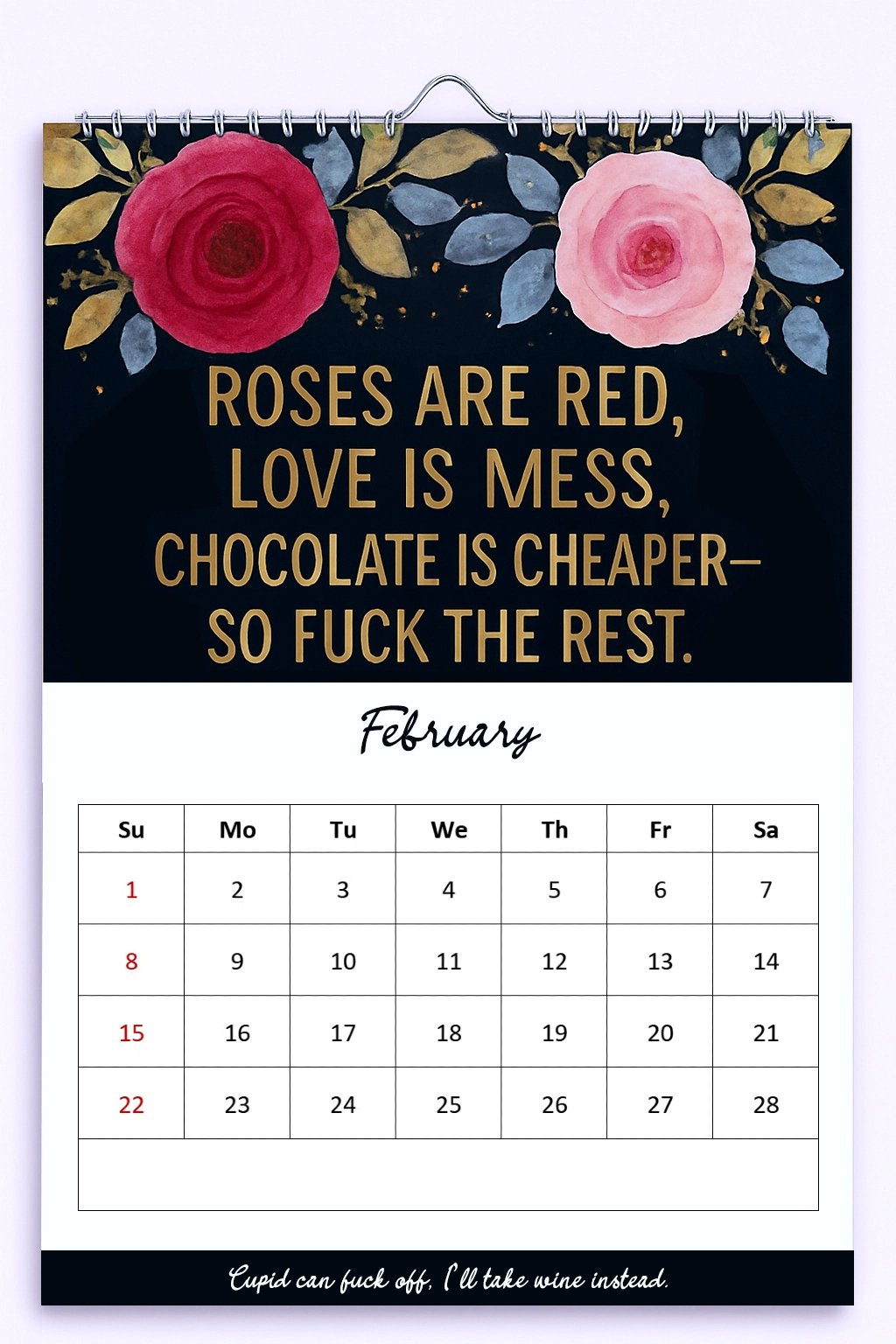 - “Roses are red, love is a mess, chocolate is cheaper—so fuck the rest.”*