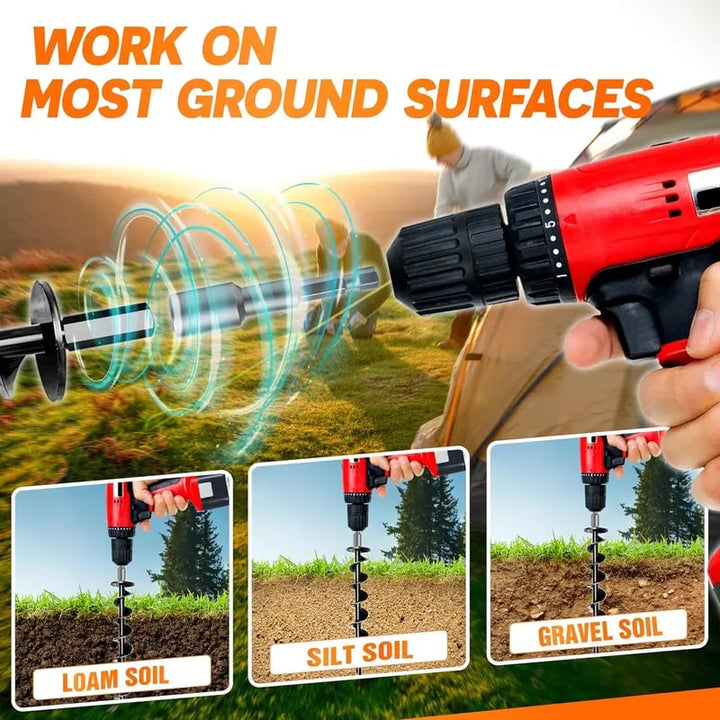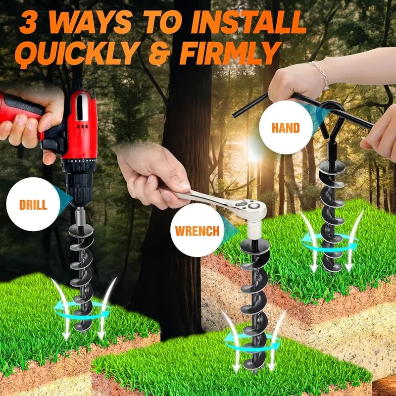 Our trampoline anchor kits are easy to use with the help of a drill machine. To the anchors penetrate into hard clay or rocky soils easily, fix the anchor on the drill machine via the power nut driver first, and mark an insertion point. Then press the button and the anchor will quickly drill into the ground. Just 10 seconds for each stake to install, saving you time and effort, giving you much convenience.