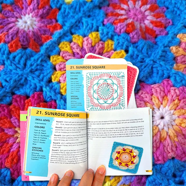 Calling all crochet enthusiasts and color lovers! 📣 Get ready to revolutionize your granny square game with this innovative, portable card deck. It's like having a crochet guru in your pocket! 👵🏼💪