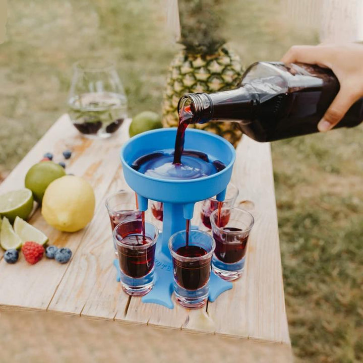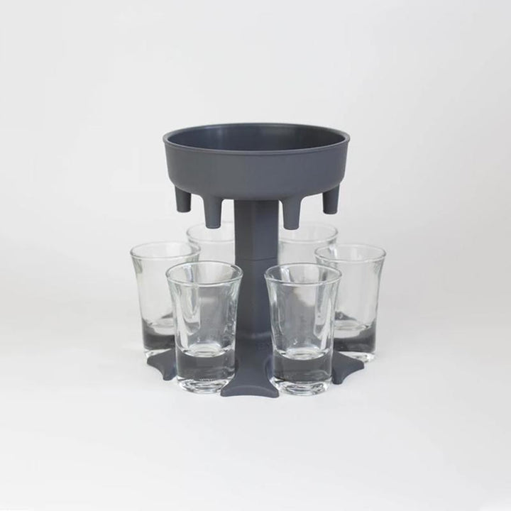 - Then it dispenses that liquid gold to all the shot glasses below and boom, you have shots for six almost instantly.