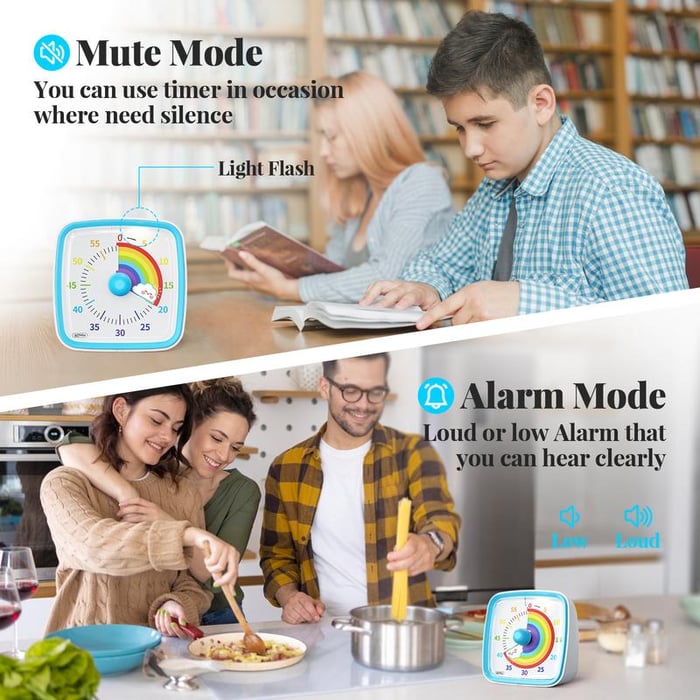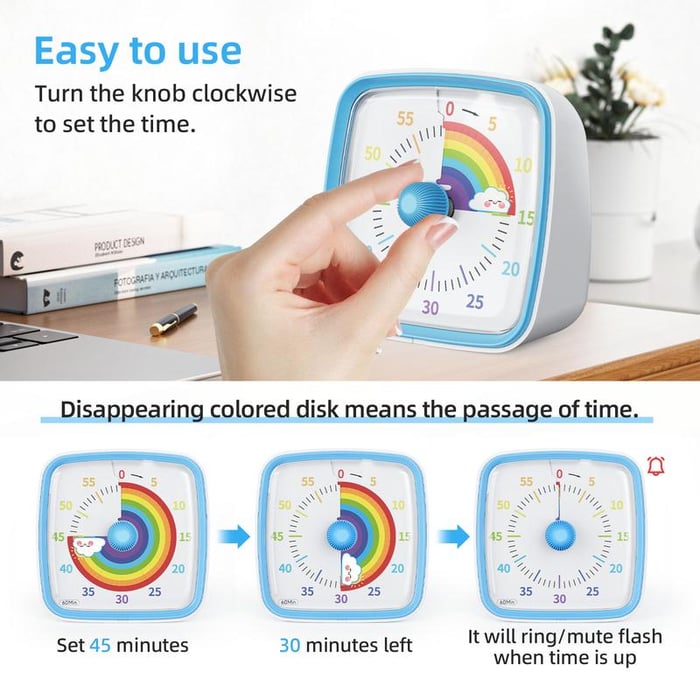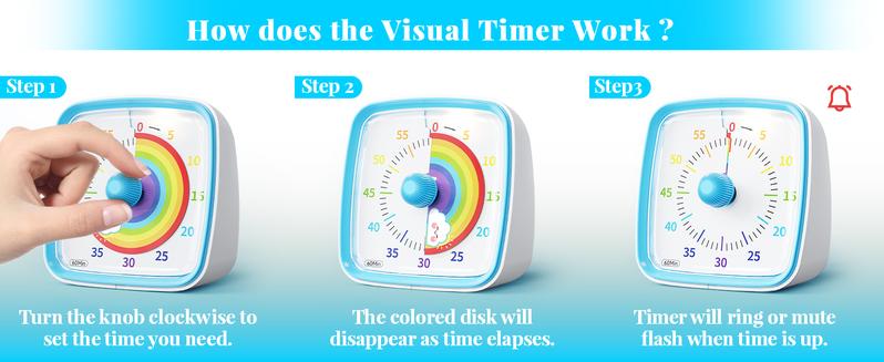 Struggling to stay on task? This easy-to-use timer helps kids and adults improve focus and productivity. Just twist to set, watch the colorful disk disappear, and stay on track!
