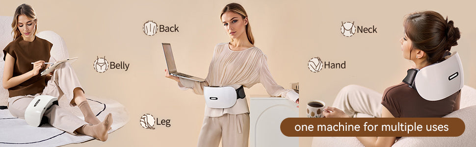 That's not all! Use this versatile massager on your back, legs, and neck for total body relief. The adjustable Velcro belt fits all body types securely. Plus, enjoy smokeless moxibustion and red light therapy with Type C charging.