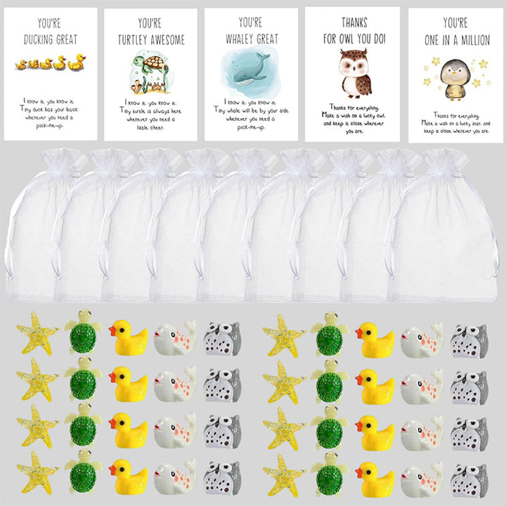 ENGAGING ANIMAL DESIGNS: Features cheerful animal figurines like ducks, turtles, owls, and whales. Each carries a playful pun, adding humor and warmth to any team or office environment.
