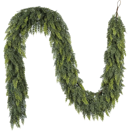 Crafted from eco-friendly PE material with thick, flexible branches, it mimics the beauty of real cedar while giving you unlimited styling freedom — from mantels and staircases to tables and doorways.