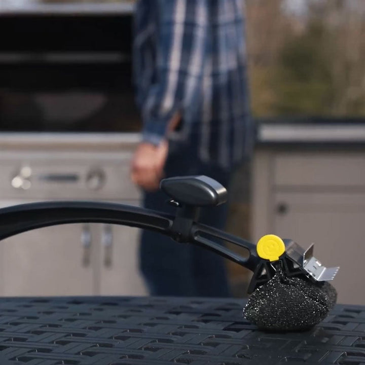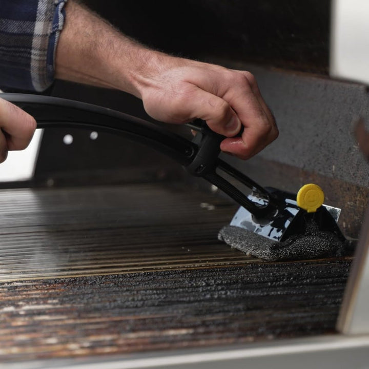 - Clean With Steam, Not Bristles - The BBQ brush has a high-tech scrubbing head with a unique core that firms up when dipped into cold water. As you scrub, steam from the grill boosts your cleaning power and the head gradually softens to reach deep into the grates.