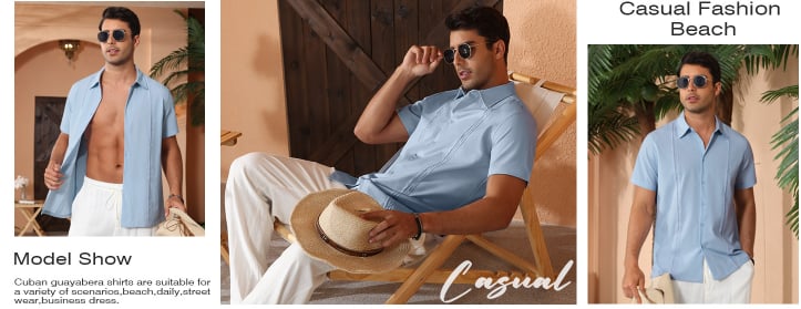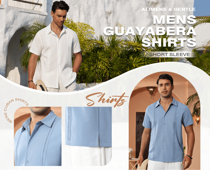 Men's Cuba Guayabera Exquisite Hollow Embroidered Button Front Shirt