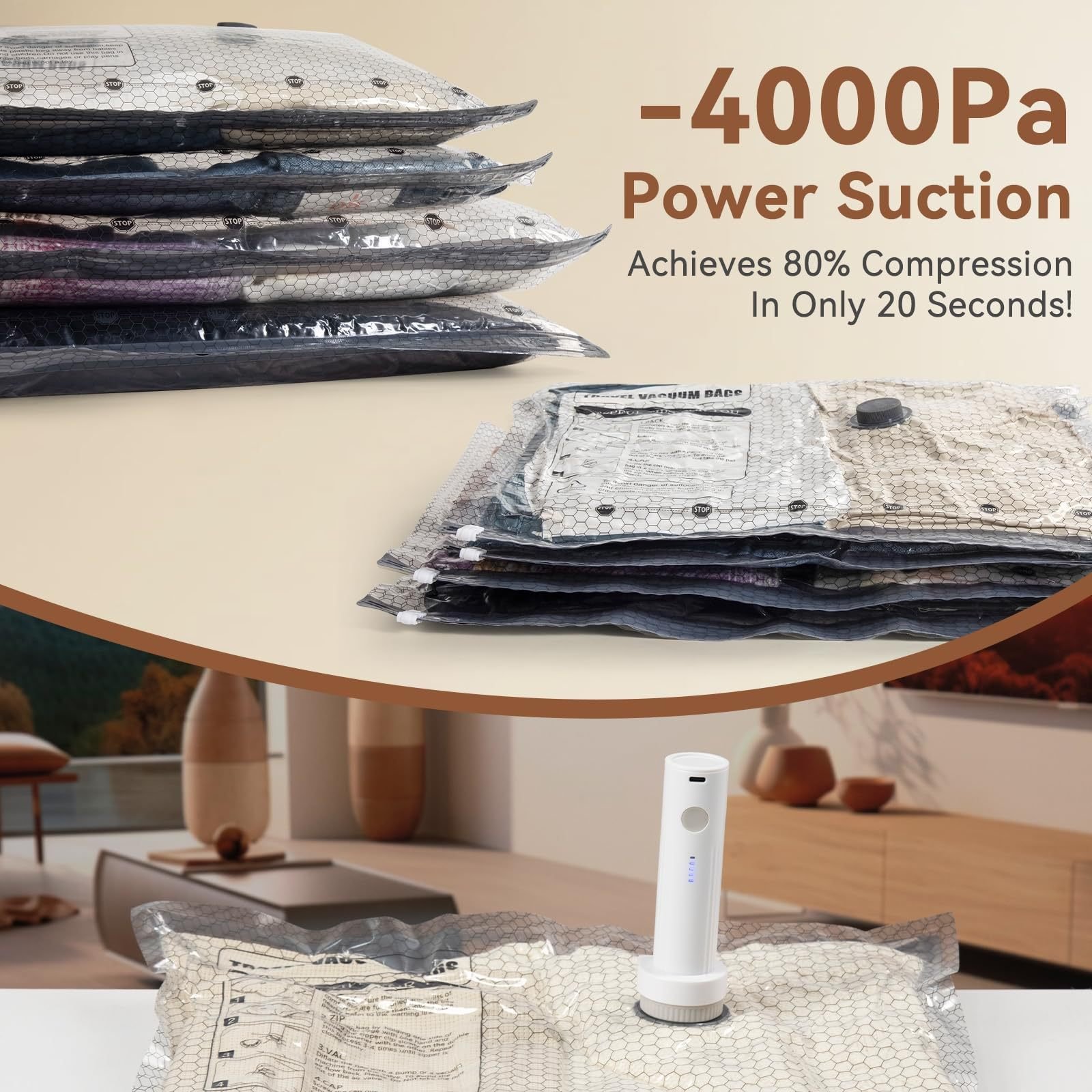 Simply seal the bag, turn on the cordless vacuum, and watch bulky clothes shrink instantly. Perfect for winter coats, sweaters, towels, or extra outfits.