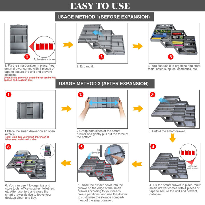 Multi-Purpose Drawer Organizer is here to rescue you from the chaos and transform your living and working spaces. Use this ingenious tool to store a myriad of items - from precious jewelry to kitchenware, makeup essentials, and office supplies, every item finds its designated spot with ease and elegance.