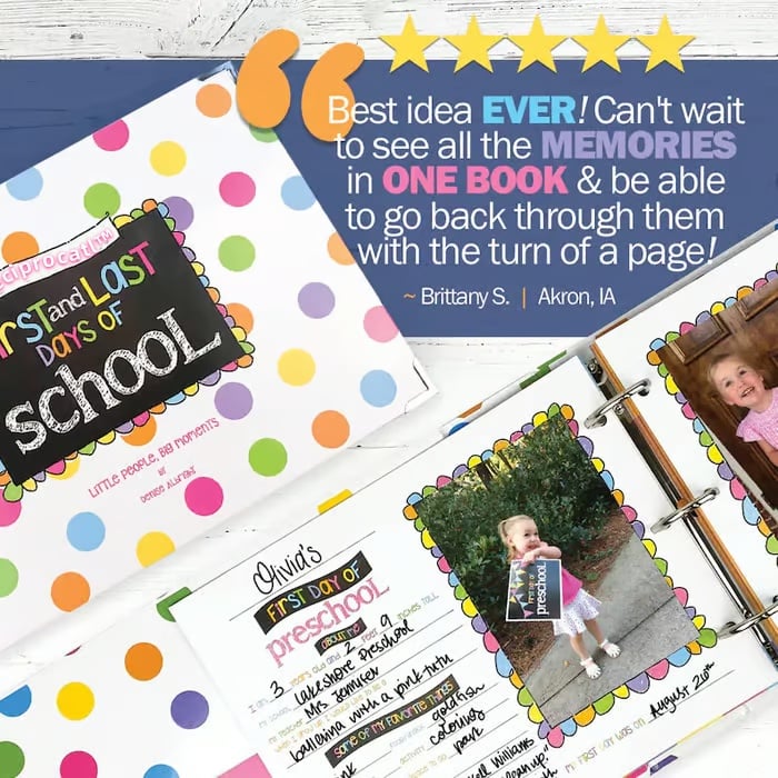 The Memory Album is a creatively compact, easy-to-use scrapbook that will help you & your child capture the good stuff throughout their school journey. Follow the simple guidelines and template pages of what to add and where to put it. In the end, you will have a beautiful (compact) keepsake binder that you'll cherish for years to come!
