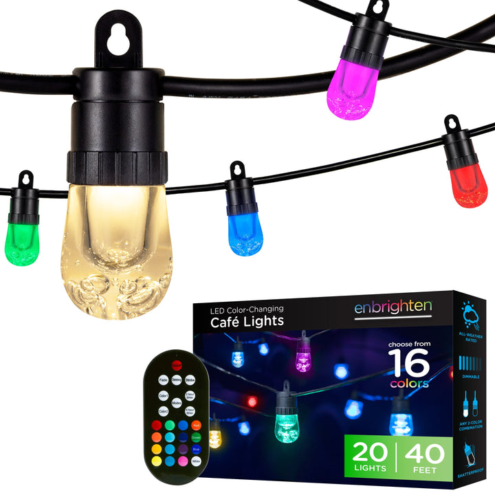 Enbrighten Ecoscapes Seasons Color-Changing LED Cafe Lights, 20 Bulbs, 40ft. Black Cord
