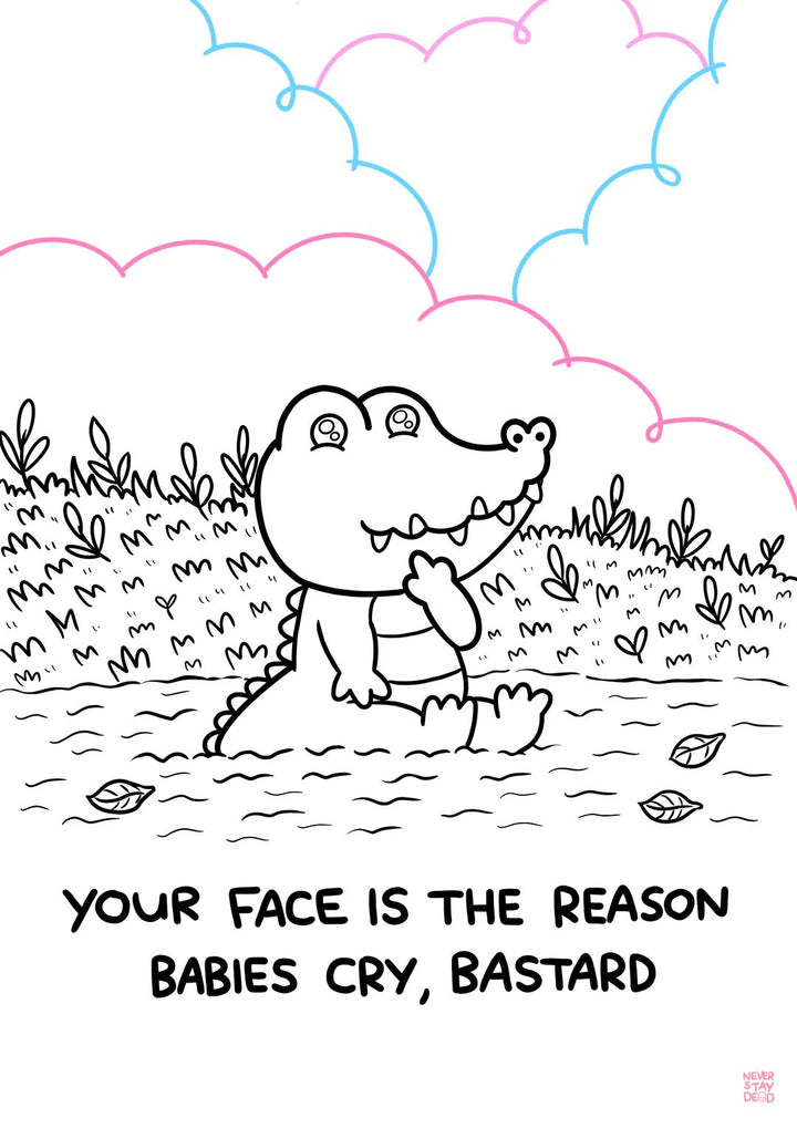 Savage Text: But here’s the twist! Alongside those cute drawings, you’ll find bold, cheeky, and even slightly profane captions. Think lines like “YOUR FACE IS THE REASON BABIES CRY, BASTARD” or “FIGHT ME, CUNT”—all designed to make you laugh out loud.