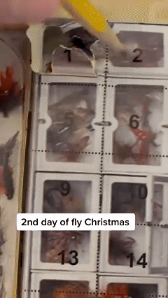 - Materials: Cardboard (calendar), feather & metal (flies), plastic (box)