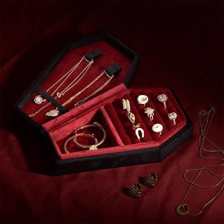☠️Find a unique place for your precious jewelry. This Gothic coffin jewelry storage box, with its unique design and exquisite craftsmanship, adds a sense of mystery and elegance to your jewelry.