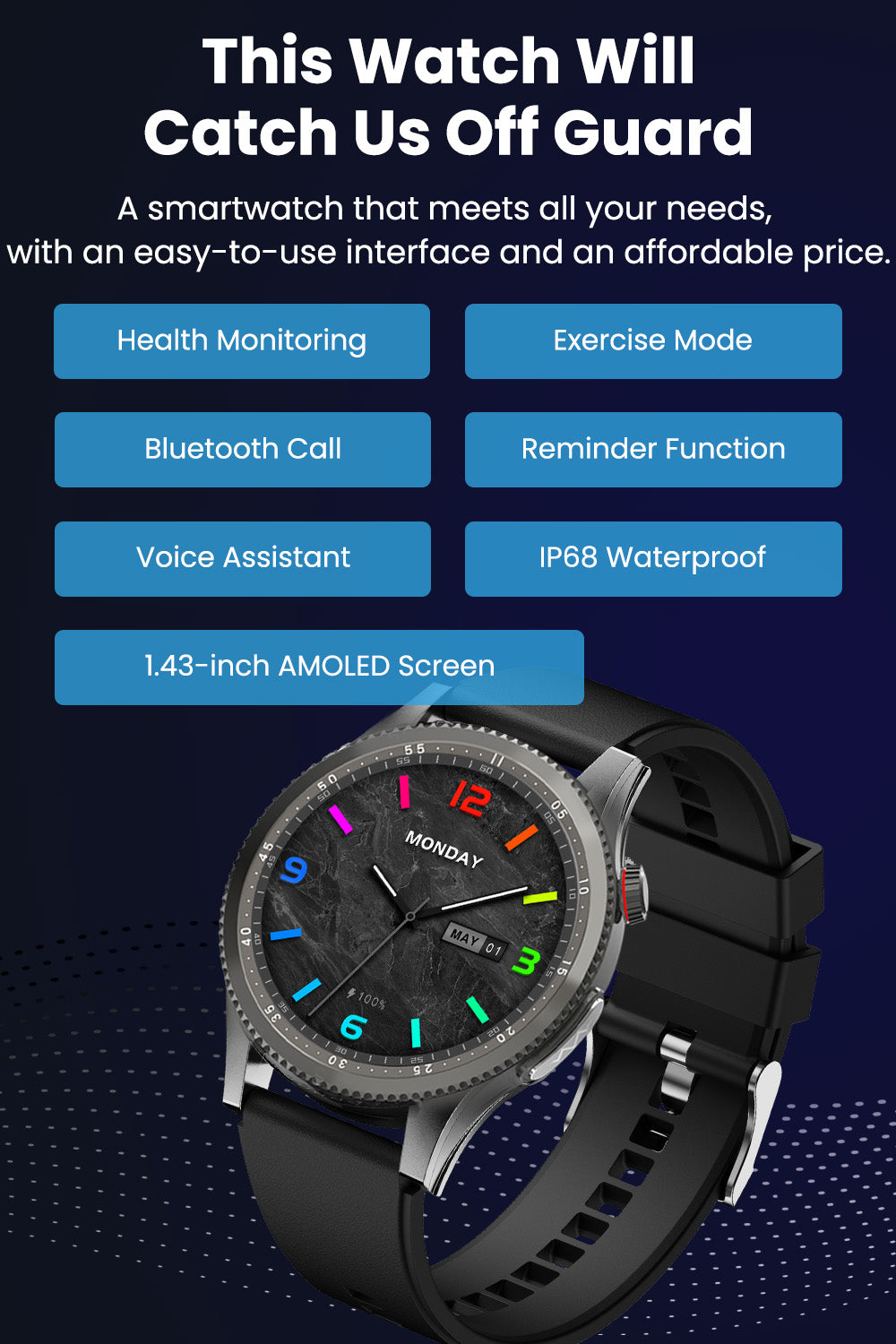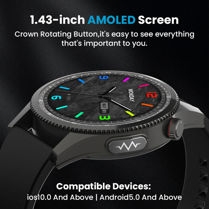 - Screen:Â Â 1.43â AMOLED round screen Resolution:466*466