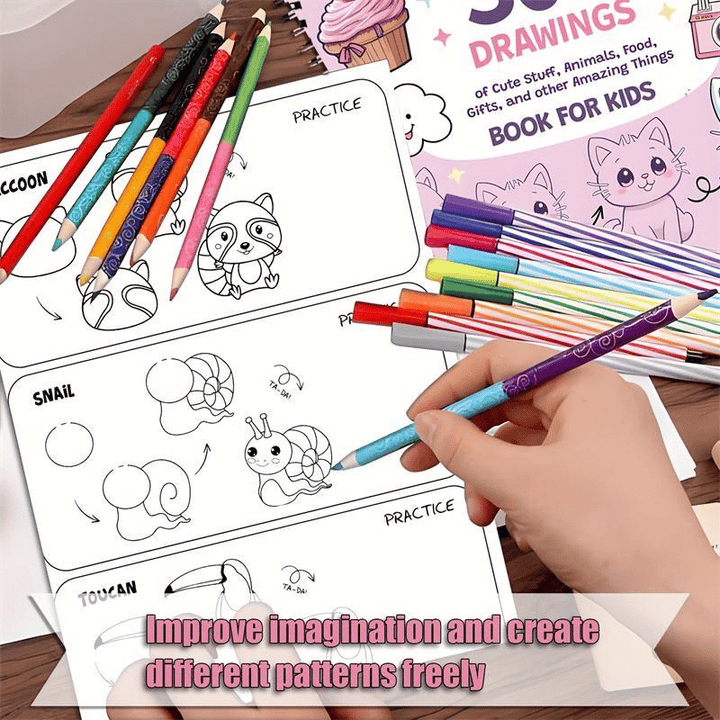 Step-by-Step Guidance: Features cute, easy-to-follow step-by-step instructions that break down drawing into simple stages, helping kids build confidence and master basic to intermediate drawing skills with ease. 📝