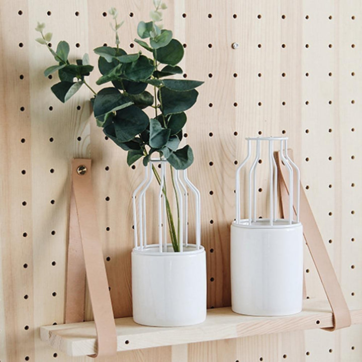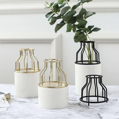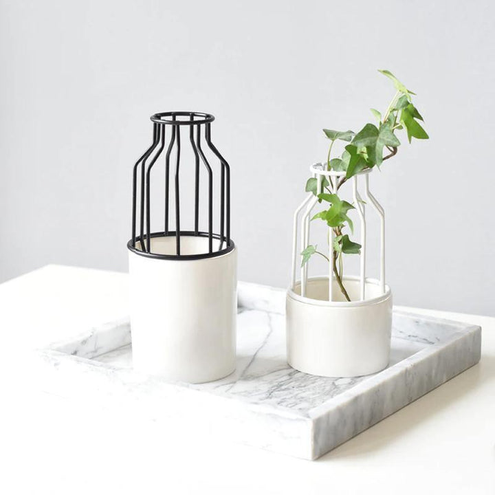 Enhance your living space with the exquisite Iron and Ceramic Vase with Grated Design. Perfect for plant lovers seeking to elevate their home decor!