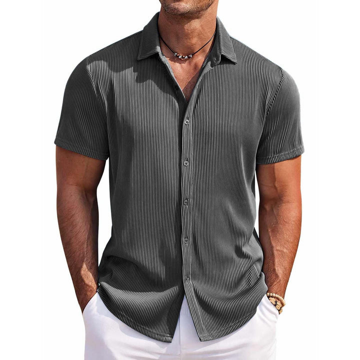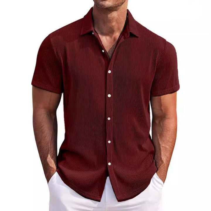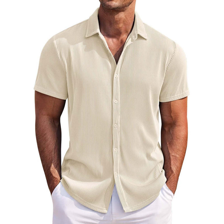 Men's Cotton Striped Jacquard Casual Loose Short Sleeve Shirt