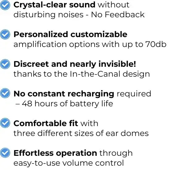 We understand that not everyone has the opportunity to get a hearing test or obtain a prescription. Thatâs why our CIC hearing aid is designed for you to simply try out and adjust the volume as needed until itâs perfect for you. Itâs that easy and straightforward.