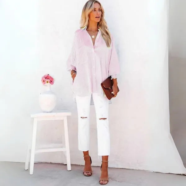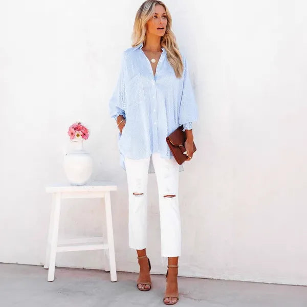 Lightweight Summer Shirts: Womens oversized button down shirts is made of high quality fabric, it has the feature of soft, breathable, lightweight. This stylish v neck blouse top provide you comfortable wearing experience.