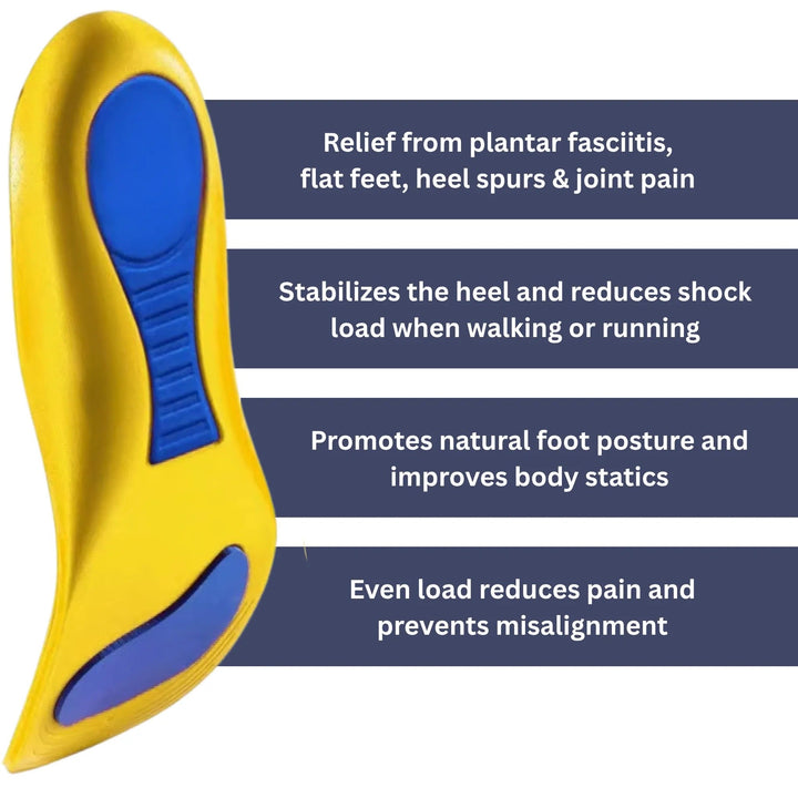 These orthopedic insoles are designed to provide stability and relief during walking, running, or prolonged standing. They help distribute foot pressure evenly, reducing strain on the feet, knees, and lower back. Suitable for everyday activities, work, sports, and leisure, they are compatible with a wide range of footwear types.