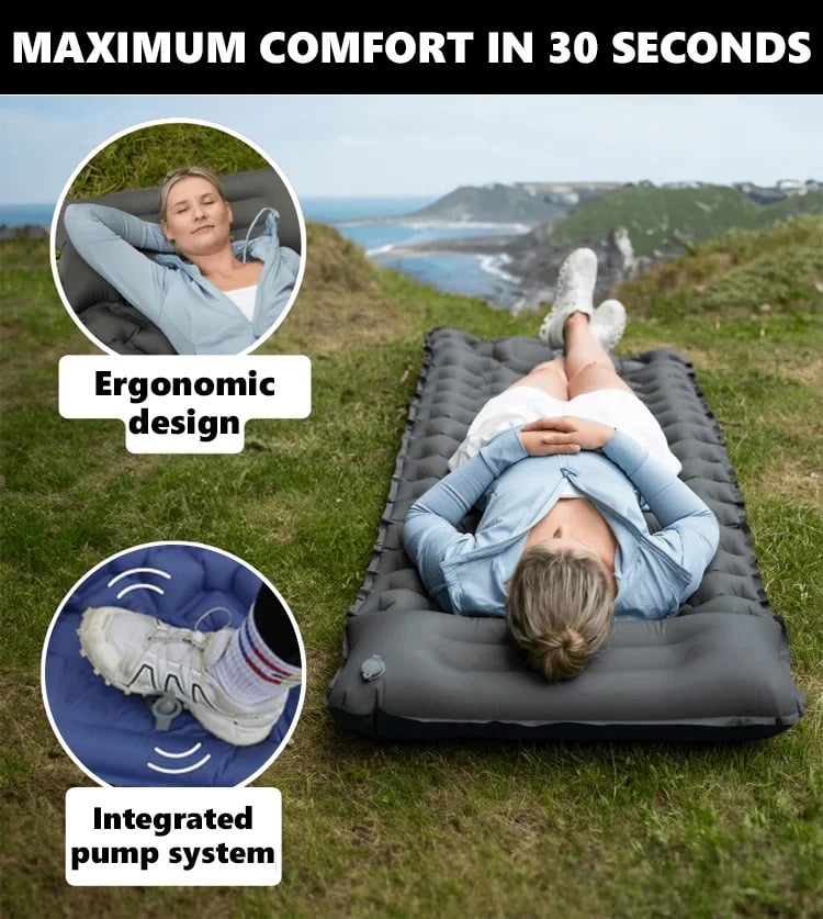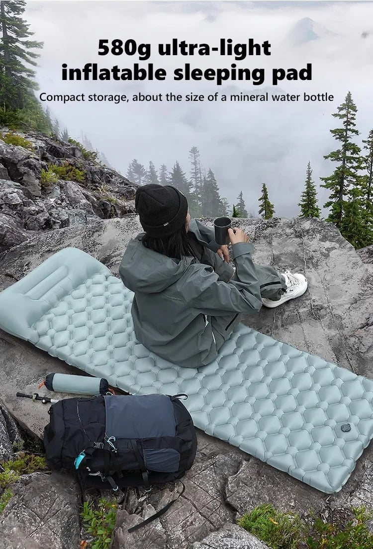 Whether you’re camping in the mountains, chilling at the beach, or just napping in the backyard — this 580g ultra-light inflatable sleeping pad is your go-to gear!