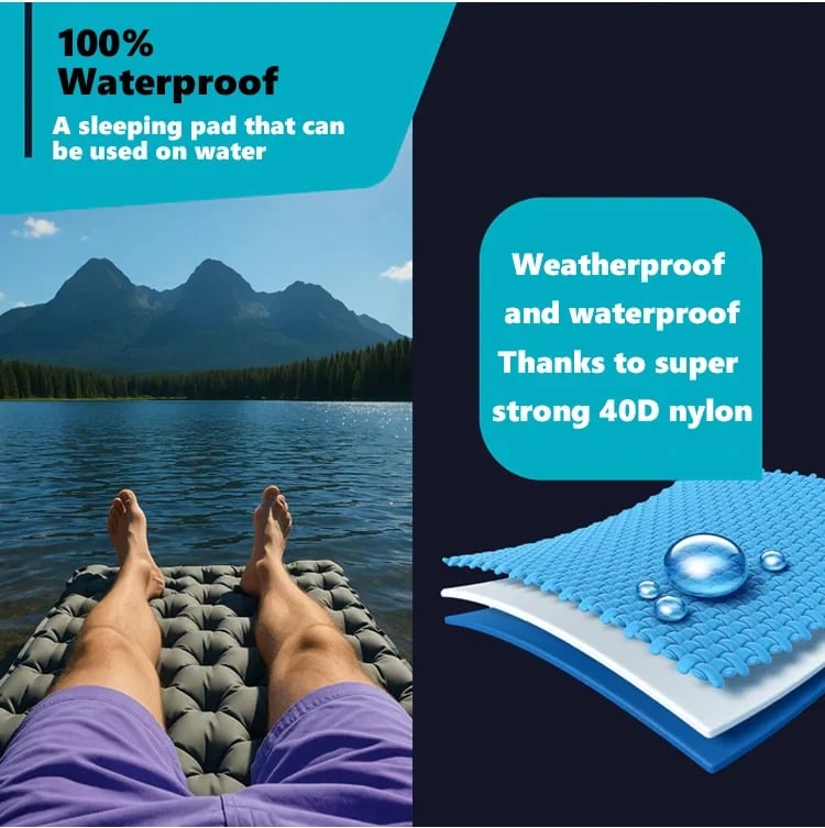 💪 Durable & waterproof — say goodbye to soggy backs and rocky discomfort. Sleep like a baby even on rough ground. 🛡️💧