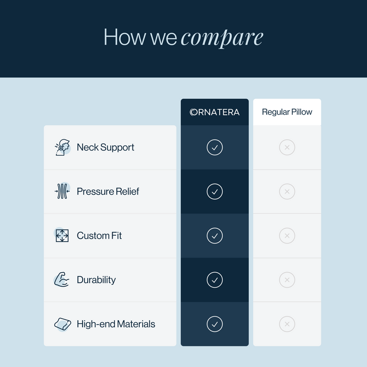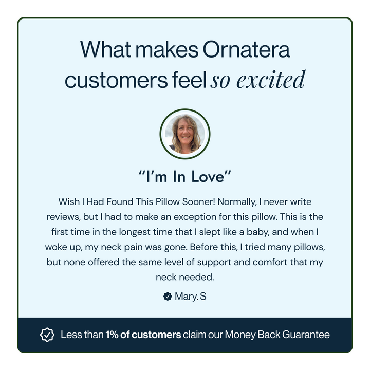 Thousands of users experience life-changing results with the Ornatera Relief Pillow.Neck pain fades,headaches disappear, andmorning stiffness is gone.Customers wake up feeling energized, focused, and excited to start their day.