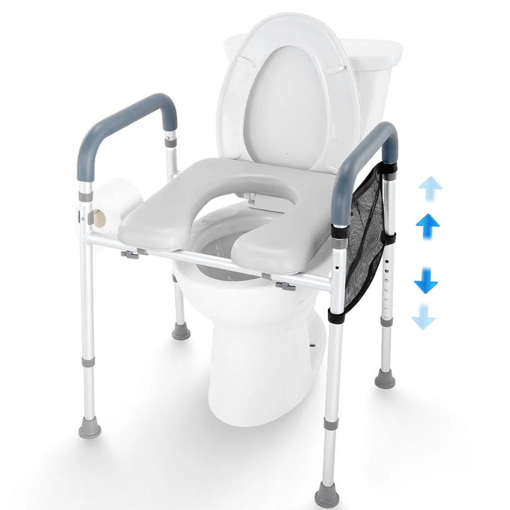 Make bathroom routines safer and easier with this height-adjustable raised toilet seat, perfect for seniors or individuals with limited mobility. Designed for personalized comfort, this toilet seat riser offers 7 height settings to suit different needs.