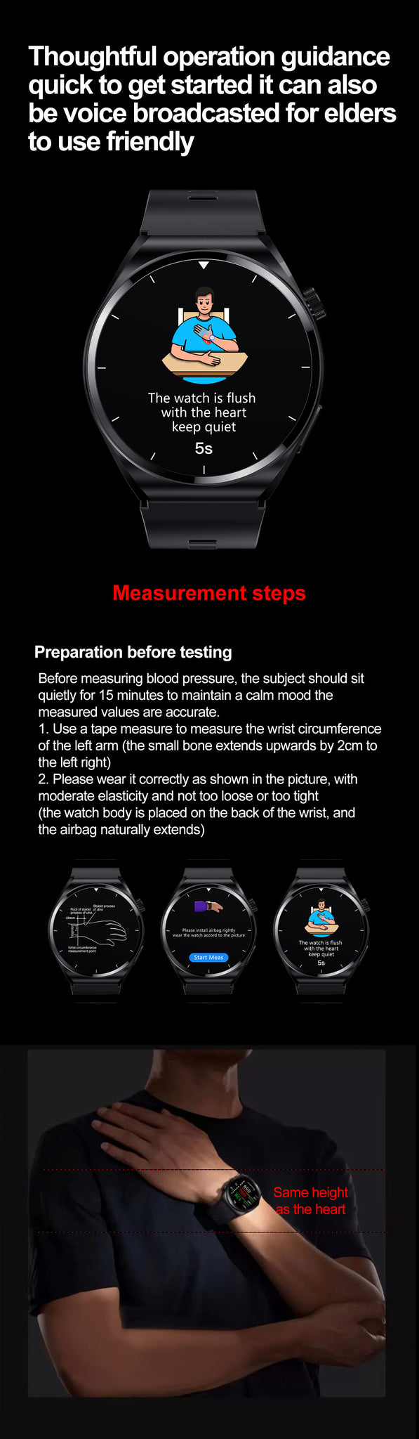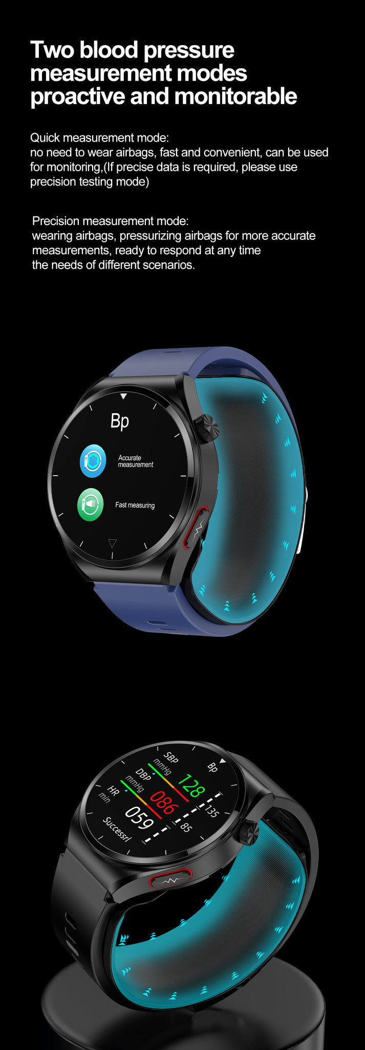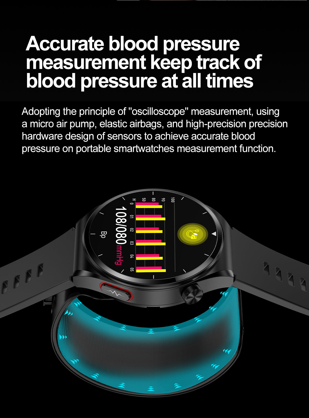 THP2 Blood Pressure Smart Watch with Air Bags Cuff ECG Wrist BP Monitor
