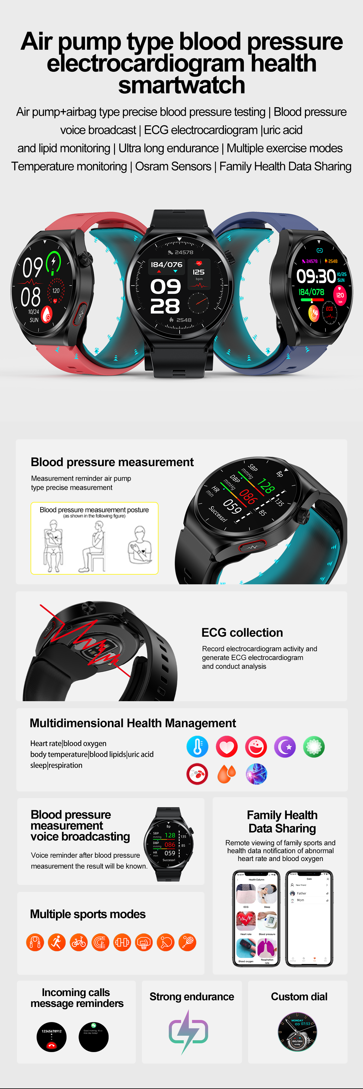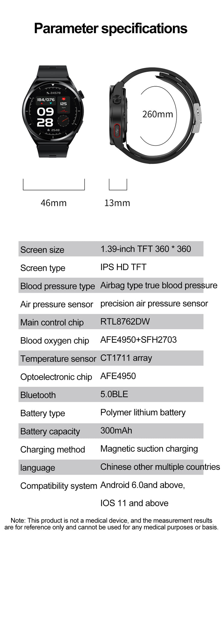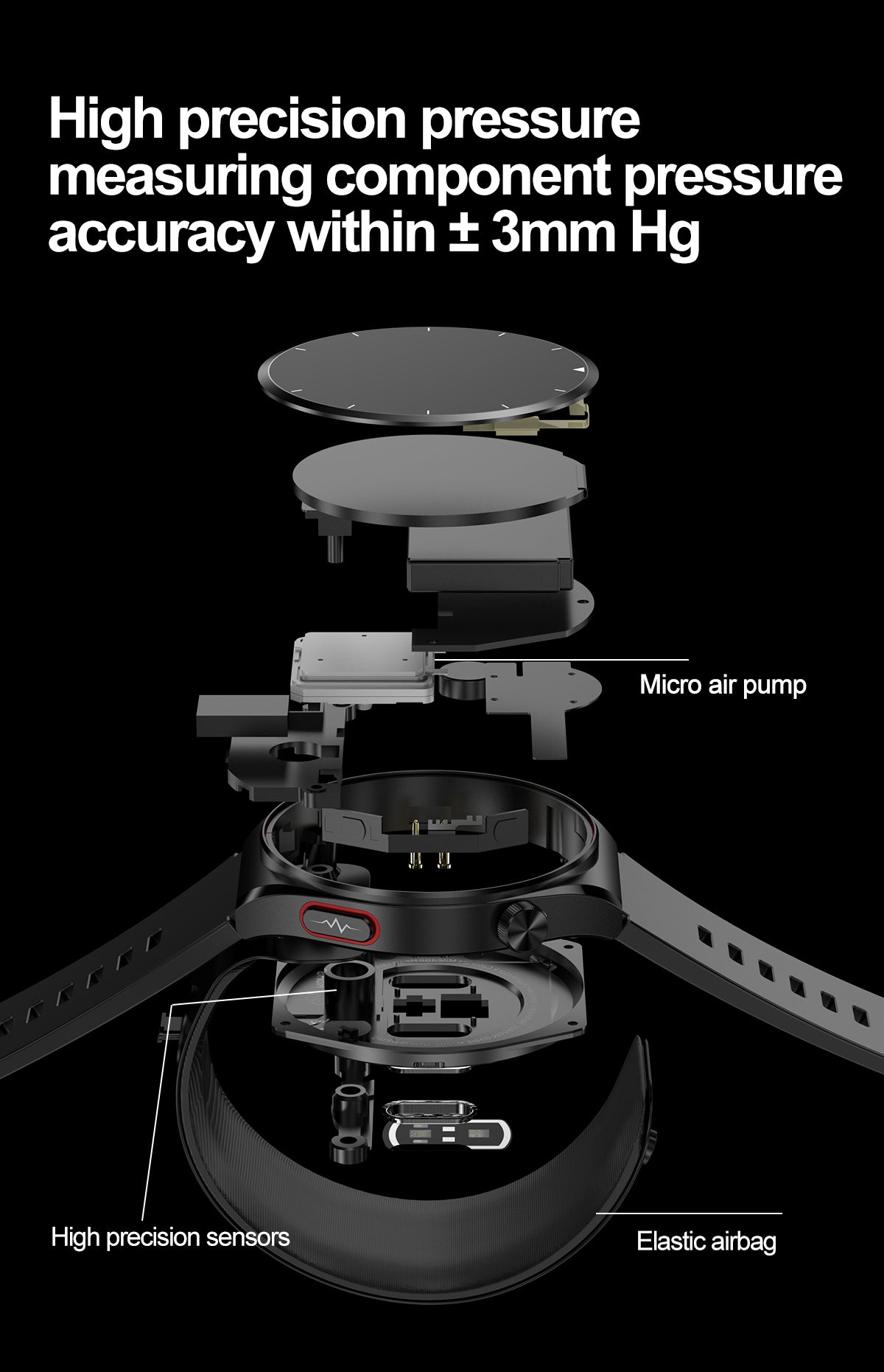 THP2 Blood Pressure Smart Watch with Air Bags Cuff ECG Wrist BP Monitor
