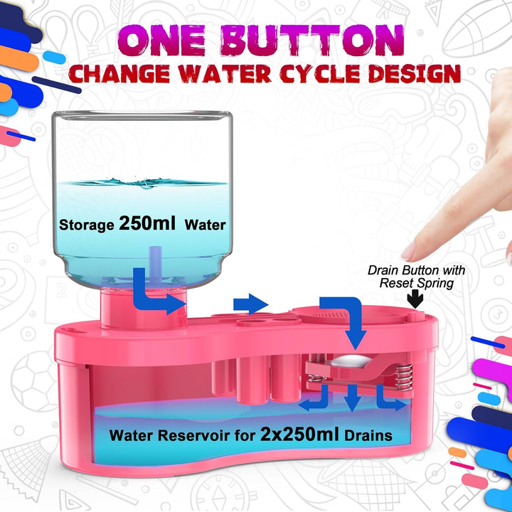 The Paint Brush Cleaner allows you to replace dirty water with clean water with just one touch, keeping all colors clean and avoiding color mixing. When you need to clean the brushes, simply wipe them horizontally on the groove in the cleaning area