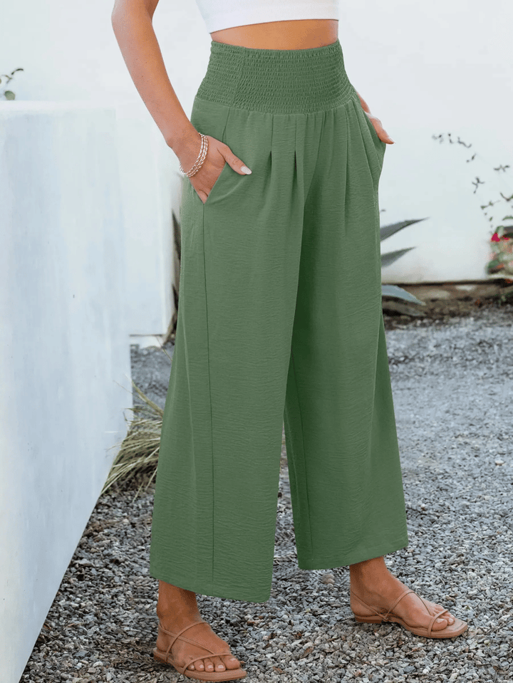 Smocked Waist Wide Leg Palazzo Pants – Relaxed Fit, Effortless Vibe